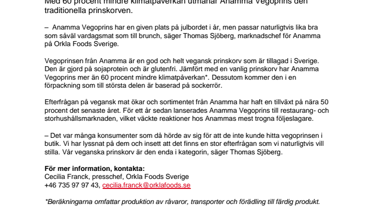 Är du på jakt efter goda gröna alternativ på julbordet? Då kan du sluta leta. Med 60 procent mindre klimatpåverkan utmanar Anamma Vegoprins den traditionella prinskorven.