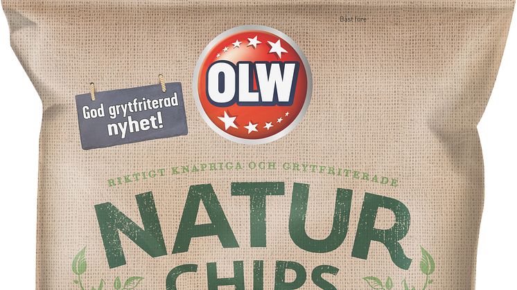 Stockholm, 23 augusti: OLW Naturchips är ett grytfriterat chips av oskalad potatis. Chipsen friteras extra länge för att få den goda knapriga konsistensen. Nu presenterar OLW Naturchips en ny smak: Knipplök & Svartpeppar.-