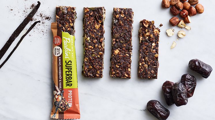 Orkla Foods Sverige återkallar Paulúns Superbars med samtliga bäst-före-datum till och med 24.04.2019. Det finns risk för att produkterna innehåller glas som kommer från ingrediensen pumpakärnor och som finns i samtliga varianter av produkten.