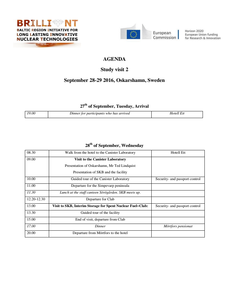 AGENDA September 28-29 2016, Oskarshamn, Sweden