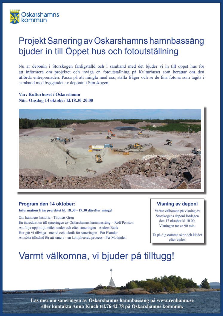 Hamnsaneringsprojektet bjuder in till Öppet hus och fotoutställning den 14 oktober