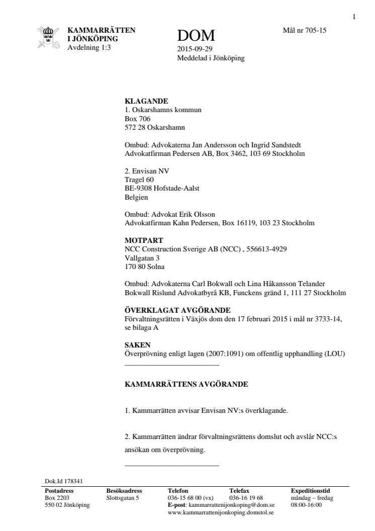 Kammarrätten har godkänt upphandlingen av entreprenör för saneringen av Oskarshamns hamnbassäng, läs hela domen här.