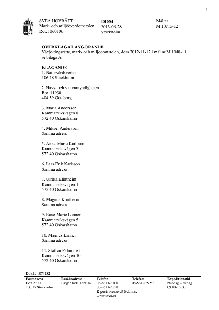 Mark- och mijööverdomstolens dom