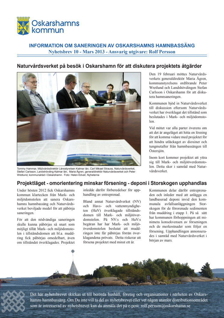 Nyhetsbrev 10 för Projekt Sanering av Oskarshamns hamnbassäng