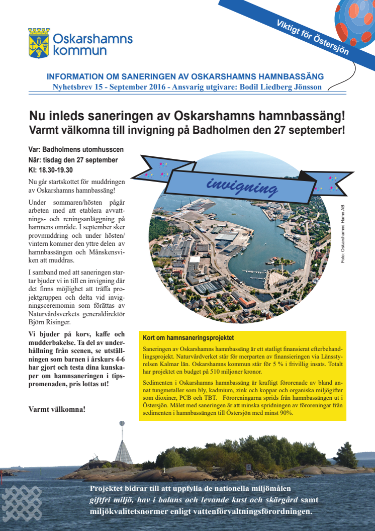 Nyhetsbrev 15 - sanering av Oskarshamns hamnbassäng