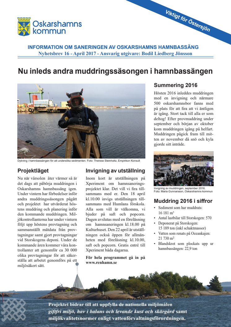 Nyhetsbrev 16 - Sanering av Oskarshamns hamnbassäng