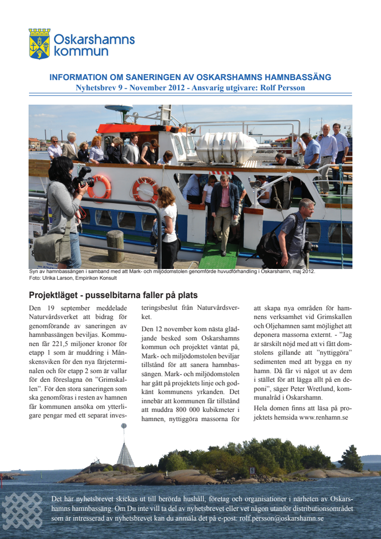 Nyhetsbrev 9 - sanering av Oskarshamns hamnbassäng
