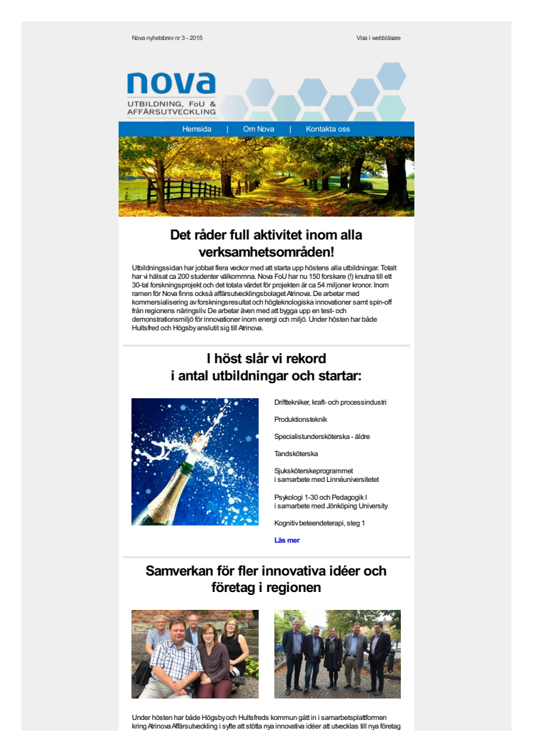 Nyhetsbrev Nova Utbildning FoU & Affärsutveckling oktober 2015