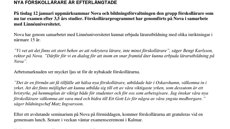 • NYA FÖRSKOLLÄRARE ÄR EFTERLÄNGTADE