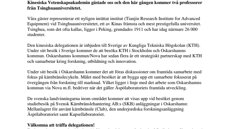 • Ytterligare ett Kinesiskt besök med kärnbränslecykeln i fokus
