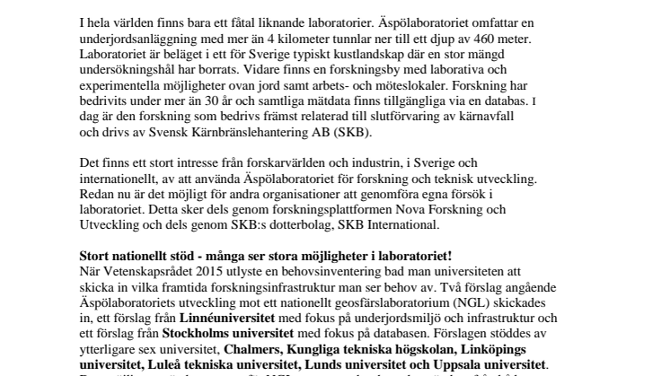 • ​Äspölaboratoriet – en unik resurs för Sverige!