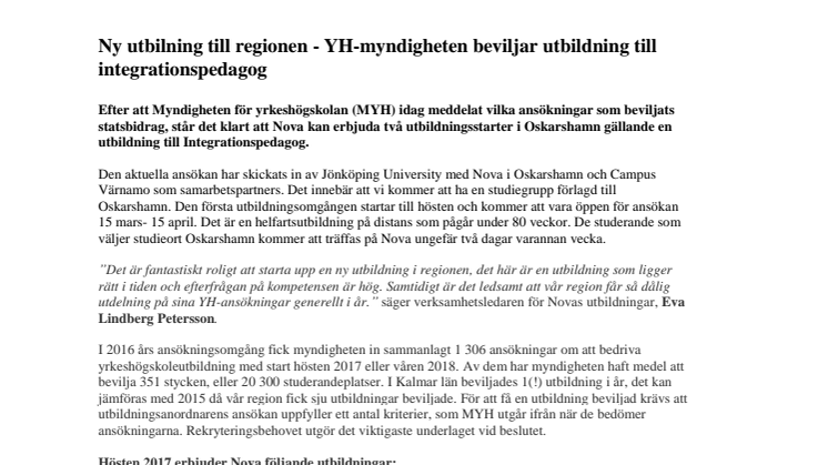 • ​Ny utbilning till regionen - YH-myndigheten beviljar utbildning till integrationspedagog