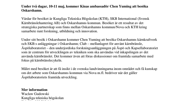 • ​Kärnbränslecykeln är i fokus när Kinas ambassadör besöker Oskarshamn
