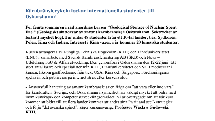 • Kärnbränslecykeln lockar internationella studenter till Oskarshamn!