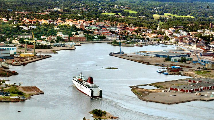 Flygbild Gotlandsfärja Oskarshamns hamnbassäng