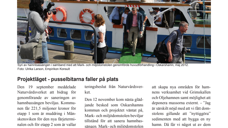 • Nyhetsbrev 8 - sanering av Oskarshamns hamnbassäng