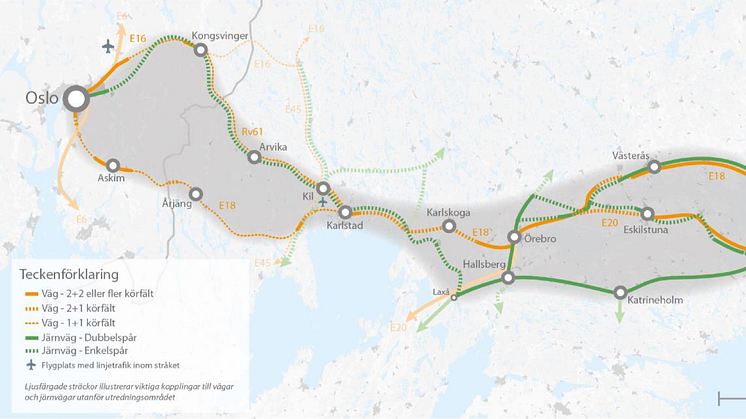 ÅVSen som är det första steget i planprocessen för ny järnväg visar på hur man genom strategiska förbättringar av befintlig infrastruktur stegvis kan skapa en förbindelse som gör att det går lika fort att åka tåg som att flyga mellan huvudstäderna, som gör att man kraftigt kan minska restiden mellan nodstäderna i stråket samtidigt som man ökar kapaciteten för godstrafiken.