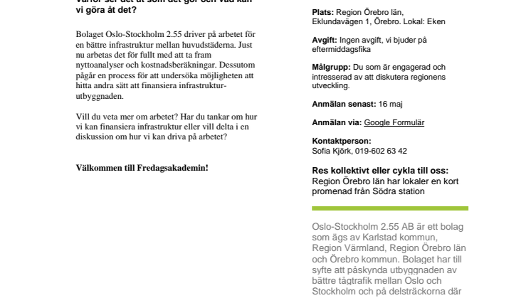 • Fredagsakademi om Oslo-Sthlm