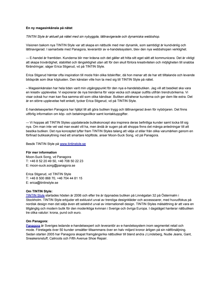 TINTIN Style är aktuell på nätet med sin nybyggda, lättnavigerade och dynamiska webbshop med magasinkänsla.