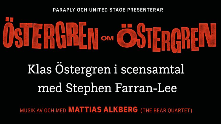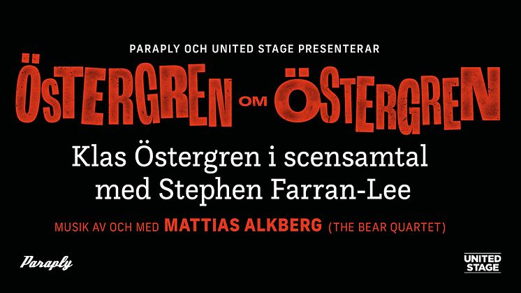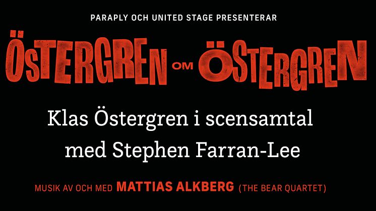 Från debuten som brådmoget underbarn i mitten av 70-talet, via det enorma genombrottet med Gentlemen på 80-talet, till dagens status som en av våra mest älskade berättare har Klas Östergren en särställning bland svenska författare. Nu skildras författarens liv och verk i scensamtalet Östergren om Östergren som tas ut på stor sverigeturné. Upplevelsebyrån Paraply bjuder in till scensamtal i fem städer: