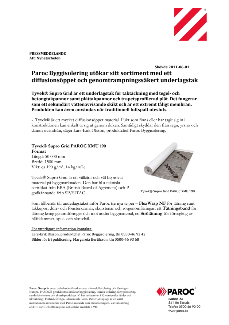 Paroc utökar sitt sortiment med ett diffusionsöppet och genomtrampningssäkert underlagstak