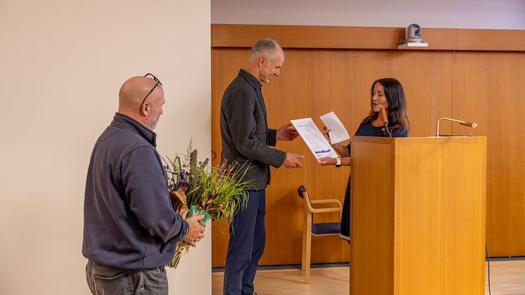 Tom Nilsson, operativ chef på Icebug, tag emot Partille kommuns hållbarhetspris 2023.