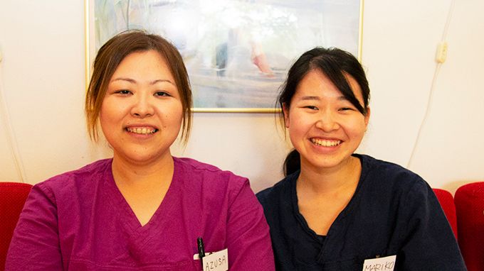 – Här har personalen mer tid för individuella aktiviteter och tar mer hänsyn till de äldres önskemål än vad vi är vana vi. De gamla verkar också väldig glada och tillfreds, svarar Mariko Kaji på frågan om vad hon ser för skillnader mellan svensk och japansk äldreomsorg.