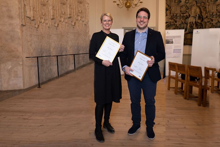 Maria Ekholm, överläkare i onkologi vid Länssjukhuset Ryhov, och Ioannis Zerdes, ST-läkare inom onkologi vid Karolinska Universitetssjukhuset, får Pfizers och Svensk Onkologisk Förenings (SOFs) nyinstiftade forskningsstipendium inom onkologi för postdoktorer