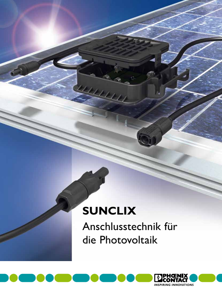 De nya kraftiga SUNCLIX-kontakterna för eget montage från Phoenix Contact gör det möjligt att enkelt kontaktera 6 mm² till 16 mm². Kontakterna har utvecklats som ett svar på behovet av förnyelsebar energi med stora solenergisystem där det är långa avstånd mellan panel och kopplingsboxar/växelriktare. Ledare av kraftigare area krävs för att minska förlusten i kabeln.
