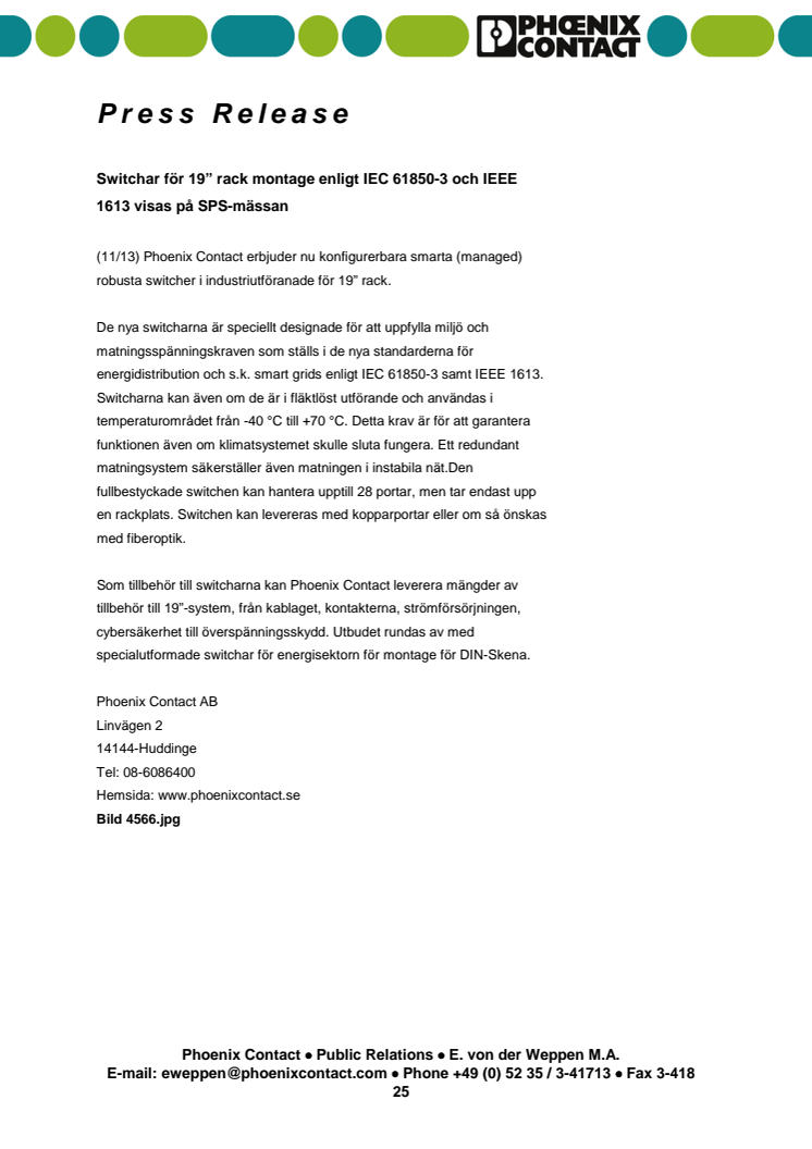 (11/13) Phoenix Contact erbjuder nu konfigurerbara smarta (managed) robusta switcher i industriutföranade för 19” rack.