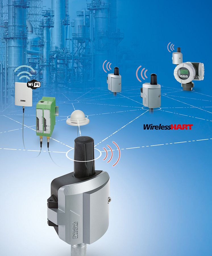 RAD-WHA-1/2NPT är en ny trådlös HART-adapter från Phoenix Contact som förenklar och snabbar upp eftermontering och utbyggnad av system med 4-20mA signaler. Adaptern ansluts t.ex till en befintlig HART-enhet i fältet för att överföra HART data trådlöst till ett nytt system, medan det ursprungliga systemet som bygger på trådad 4-20mA förblir intakt.