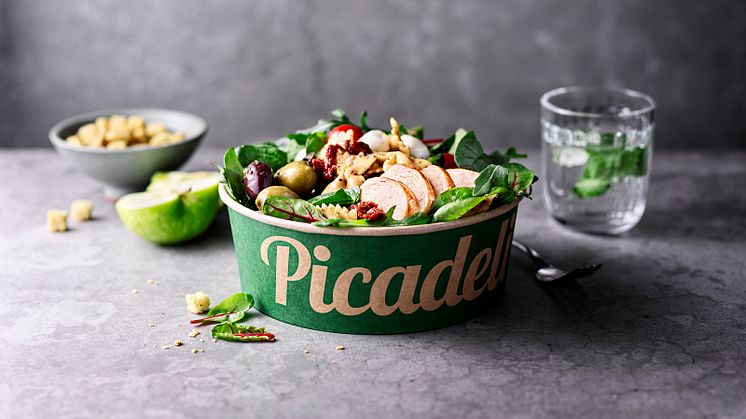Picadeli har nått stora framgångar med sina fräscha självplockssallader som mixas i deras berömda gröna skål. Nu blir den ännu grönare – Picadeli uppdaterar sin förpackning till en med mindre plast och som är tillverkat av ett mer hållbart papper. Förändringen innebär en minskad plastanvändning med 42 ton årligen.