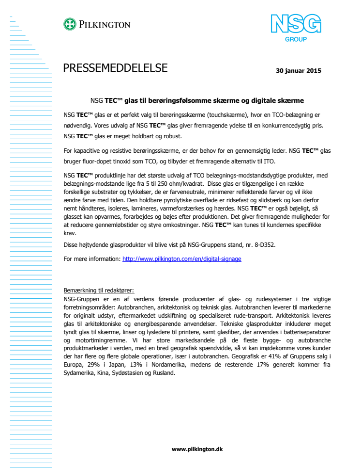 NSG TEC™ glas til berøringsfølsomme skærme og digitale skærme