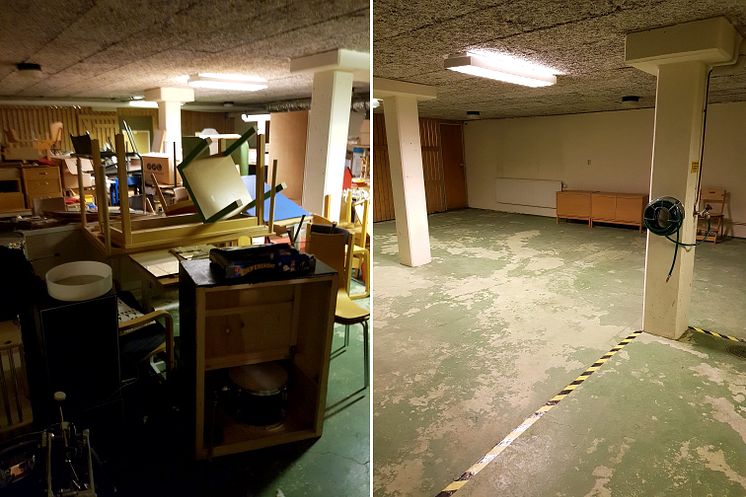 Så här såg det ut i ett av skyddsrummen före och efter inventeringen.