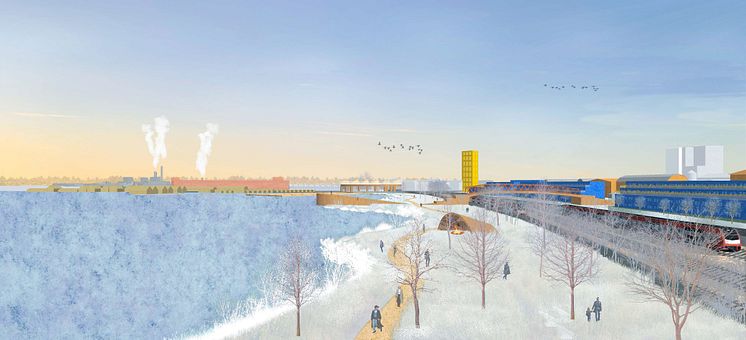 Bild från tävlingsbidraget Piteå - in nature i Europan 2023.