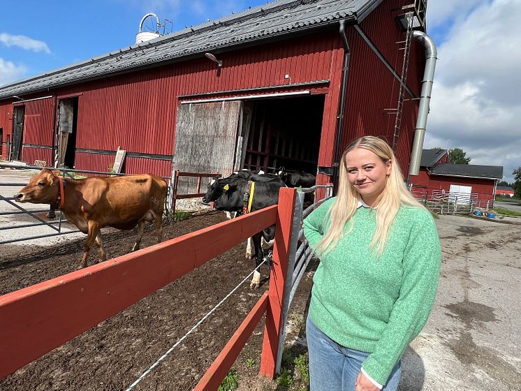 Piteå kommuns kommunalråd Kata Nilsson fick träffa några av skolans kor som valt att hålla sig nära ladugården i stället för att vara ute på ängarna.