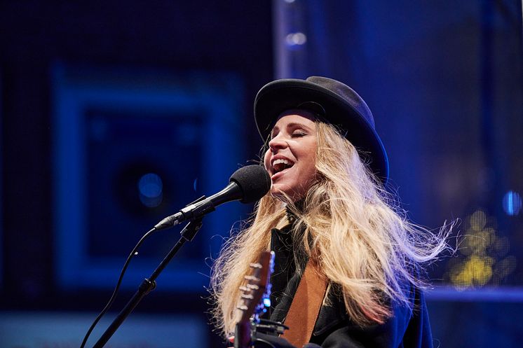 Lisa Miskovsky underhåller via OS-firandet 26 mars 2022.