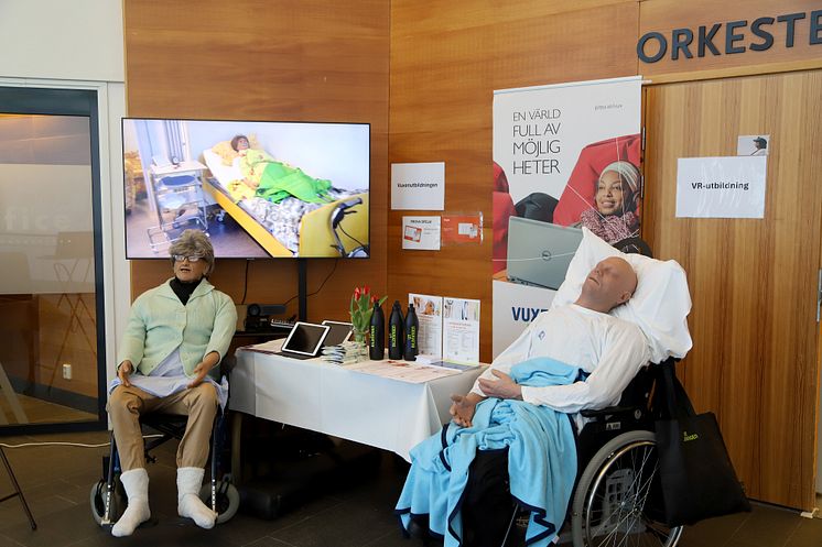 Vuxenutbildningen fanns på plats i utställningsdelen av mässan för att berätta om sitt moderna vårdlab som möjliggör autentisk utbildning i vårdmiljö - ett samverkansområde mellan Samhällsbyggnad och Socialförvaltningen. OBS! Det är dockor som används i utbildningen som är med på bilden.