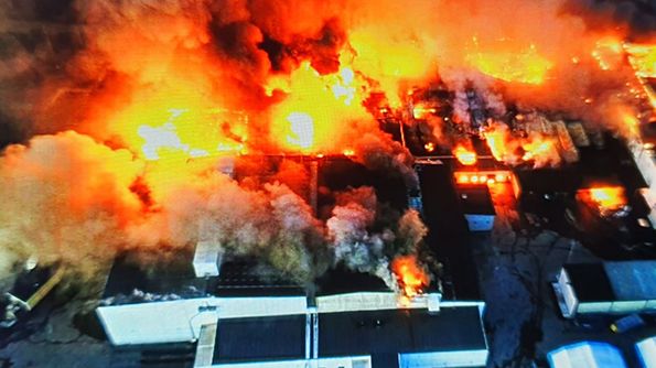 Branden i Polarbröds byggnad riskerar att sprida sig till kylanläggning där det finns stora mängder ammoniak. Boende i centrala Älvsbyn uppmanas därför att hålla sig inomhus och stänga dörrar och fönster och ventilation.
