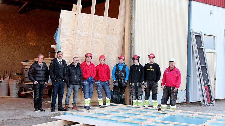 Det är fem elever i årskurs 3 (fyra träelever och en murare) som arbetar med bygget av stugan och det är också de som kommer att resa ner och bygga upp huset på plats tillsammans med lärarna Lars Eriksson och Andreas Markstedt.
