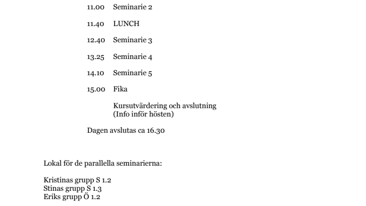 Lärarna opponerar på varandras uppsatser i seminarieform. Kristina Hansson är examinator tillsammans med Stina Westerlund, undervisande lektor och kursansvarig och Erik Sigurdsson, undervisande lektor – båda från Institutionen för estetiska ämnen, Umeå universitet.