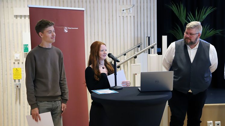 På kommunfullmäktige på måndagen den 24 juni delades årets företagarstipendium ut till elever från Strömbackaskolan. Årets vinnare är Kajsa Lundberg och Oliver Notelid med sitt UF-företag MediVibe, som de drivit under sitt andra år på teknikprogrammet på Strömbacka. Deras produkt är ett medicinskt halsband som påminner användaren om att ta sin medicin.