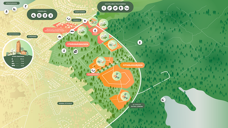 Arbetet med att utvidga staden österut är redan påbörjat med det nya bostadsområdet Strömnäsbacken och tillhörande förskola. Nu fortsätter arbetet med Strömnäsbacken etapp 2 – ett område med flerbostadshus och centrumområde – samt Pitholmshöjden med blandbebyggelse. Området som helhet ska ge plats för 1000-1400 invånare.