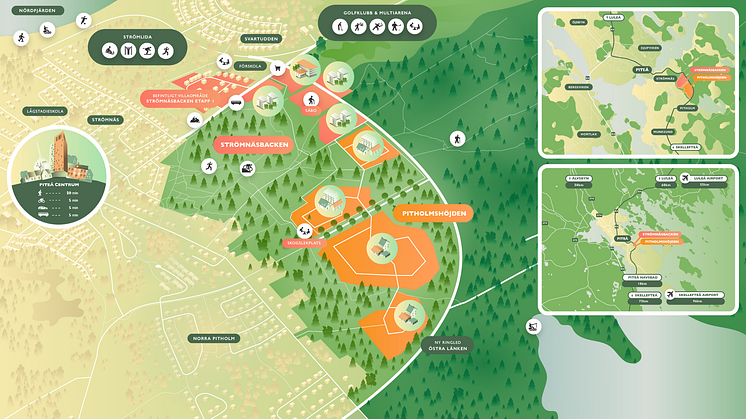 Boende i området kommer att ha gångavstånd till Piteå centrum och direkt närhet till skogen samt motionsspår och idrottsaktiviteter vid golfbanan och Strömlidabacken. Även havsviken Nördfjärden, dess grönområden och Piteå Ice Arena finns nära.