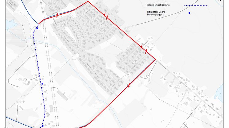 Under sommaren 2025 ska Piteå kommun bygga om Norra Pitholmsvägen mellan Bryggmansvägen och Lillåkersvägen. I samband med detta behöver busslinje 5 ledas om via Södra Pitholmsvägen. Den tillfälliga sträckningen gäller från den 5 maj till den 31 oktober. Flera hållplatser kommer tillfälligt att flyttas – se bild nedan för karta över den tillfälliga linjesträckningen och placeringen av hållplatserna.