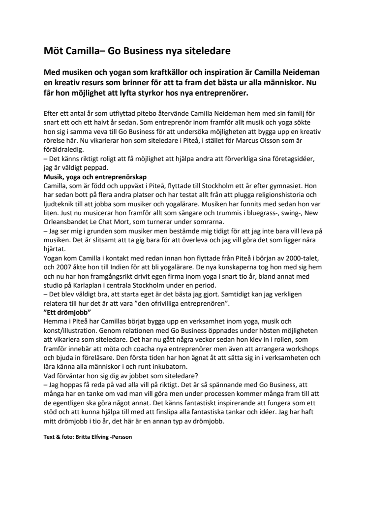 Med musiken och yogan som kraftkällor och inspiration är Camilla Neideman en kreativ resurs som brinner för att ta fram det bästa ur alla människor. Nu får hon möjlighet att lyfta styrkor hos nya entreprenörer.