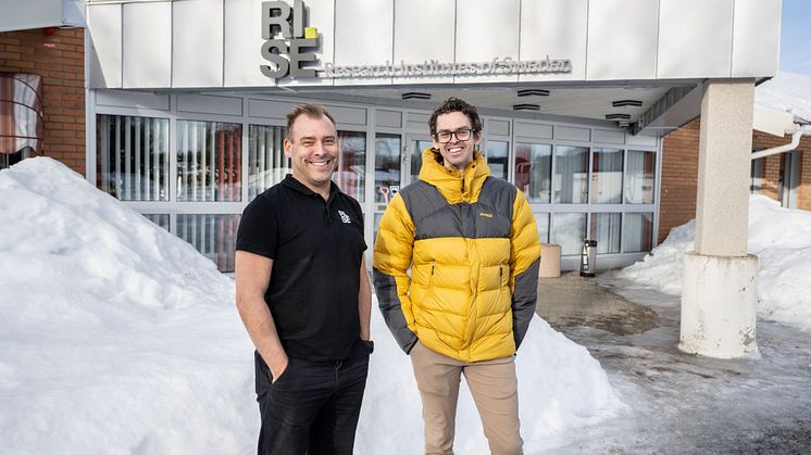 – Det är jättebra att eleverna får testa på att jobba praktiskt med ett så komplext material som fiberkomposit. Det är viktigt att få se syftet med varför vi räknar på olika saker. Annars kan man lätt glömma bort meningen med all teori. Att kunna besöka ett ställe som RISE är unikt, de kan anpassa besöket så att det blir intressant och relevant för våra elever, säger läraren David Eknor, som får medhåll av eleven Leo Pettersson.
