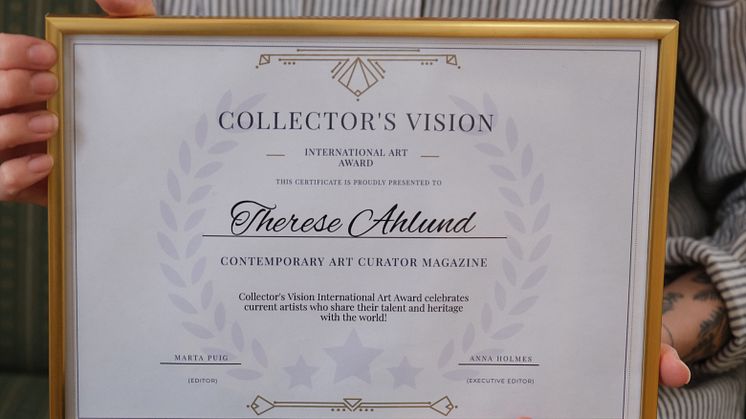 Skellefteåkonstnären Therese Åhlund har utsetts till vinnare av det prestigefyllda konstpriset Collectors Vision International Art Award som delas ut av Contemporary Art Curator Magazine. Priset delas ut till de mest framstående och begåvande konstnärerna som är aktiva inom konstvärlden just nu.