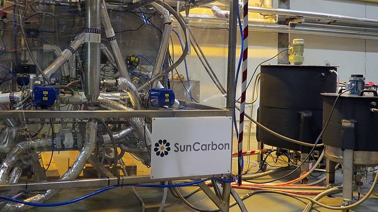 Det hela började i ett labb vid Lunds Tekniska Universitet, under ledning av Anders Arkell som numera är CTO/teknikchef i SunCarbon. Därefter har tekniken skalats upp för att nu testas i ett pilotprojekt på Smurfit Kappa Kraftliner i Piteå.