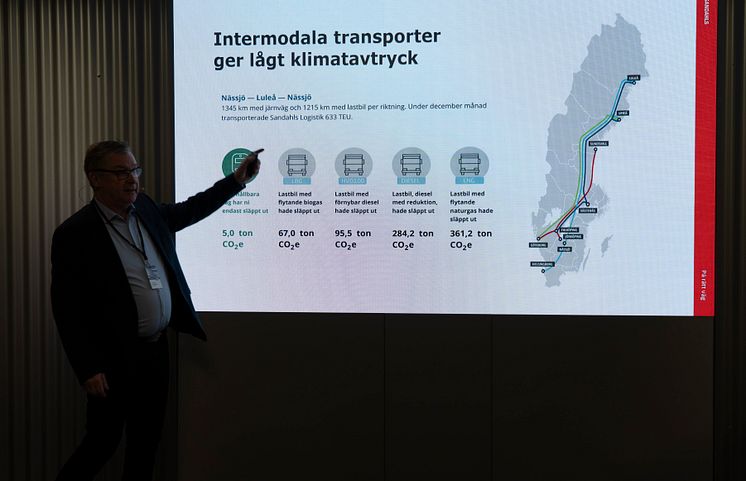 Per Gustavsson, försäljningschef på Sandahls Logistik talade på Plannjas event om fossilfritt.